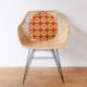 Steek uw huis met deze ronde kussen die het foto-afbeelding van een gele Dahlia-bloem op een heldere, rode achtergrond weergeven en in een herhalend patroon worden afgedrukt. Een leuk, floreel ontwerp! Selecteer de stijl van uw kussens.