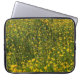 Een foto van een bed met gele maisieën zijn ook een paar blauwe cornbloemen.