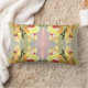 Het prachtige patroon op deze Lumbar Pillow is gemaakt van een originele foto van gele orchideeën in het middagzonlicht. De orchidee bloemen hebben bleke gele bladen met rode tot paarse centers. Een donkergroene stengelwind gaat door het midden van de bloei. De pastelachtergrond bestaat uit tinten roze overvloeien in bleek groen. Een paar lichtgroene bladeren van een enkel plant kunnen in een hoek worden gezien. Wanneer de foto wordt gecombineerd om het patroon te maken, wordt het bloemontwerp een tuin van orchideeën met de roze gloed van de middagzon in het midden.