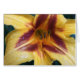 Sluiting van gele daglelie met donkerrood midden