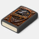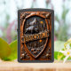 This product features a design reminiscent of a hand-carved wooden shield or badge, set against a dark, textured background. The design includes a large American Bison standing over a herd of smaller bison near a lake, surrounded by tall pine trees and a prominent mountain peak. The name "YELLOWSTONE" is carved into a sign across the center. The artwork is framed by ornate carvings and is printed on a matte black lighter case. The design may look real due to the high detail and three-dimensional texture in the artwork.