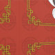 De donkere Yin en lichtgele Yang zwemmen rond elkaar en creëren een klassieke Chinese Taijitu die harmonie en evenwicht in al zijn zaken vertegenwoordigt. Een klassieke Chinese grens in gouden lijsten de twee vissen, en een zwak patroon van Chinese symbolen voor rijkdom, levensduur, dubbel geluk en geluk op een rode achtergrond, completeren het ontwerp.