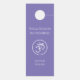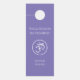 Niet storen deurhanger, met een eenvoudige om-symbool afbeelding op een paarse achtergrond. Met witte aanpasbare letters kunt u uw eigen informatie toevoegen. Geweldig voor uw yoga-oefensessies en fitnesslessen.