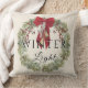 Zacht winterlicht met kerstkrans kussen