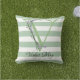 Zachte groene stroken monogram lavendelgroen buitenkussen