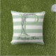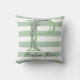 Zachte groene stroken monogram lavendelgroen buitenkussen