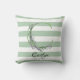 Zachte salie groene witte strips monogram botanisc buitenkussen