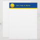 Een groene gele zon die glimlacht op een blauwe achtergrond. Voeg je eigen tekst toe. U kunt de kleur van zowel de tekst als de achtergrond wijzigen.
