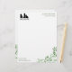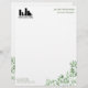 Groene briefhoofd gepersonaliseerd met uw logo, naam, titel en contactgegevens in elegante groene letters. In de rechterbenedenhoek een verzameling van lommerrijke twijgen in zachte groene tinten voor een kalmerende look of verzorgende look. Gepersonaliseerde briefhoofd afgedrukt met jouw naam, titel, adres en logo. Schrijf uw correspondentie op dit gepersonaliseerde groene briefhoofd met jouw naam en logo. Briefhoofd in wit en groen met een verzorgende look voor iedereen in de wellness-industrie, therapie of meer.