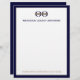 Een professionele, op maat gemaakte zakelijke briefhoofd sjabloon in een moderne stijl met een stijlvolle marineblauwe rand die eenvoudig kan worden bijgewerkt met uw bedrijf logo en briefhoofd footer, inclusief uw contactgegevens of aangepaste tekst. De effen blauwe achterkant heeft een logo in de onderste derde voor continuïteit in het ontwerp. Elk blad straalt professionaliteit en verfijning uit, waardoor het perfect is voor officiële correspondentie en belangrijke zakelijke documenten.