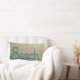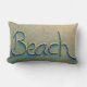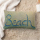 Het ontwerp van deze strandkussens is voorzien van een foto van dichtbij van het woord strand dat in het zand is getekend (door mij). Verkrijgbaar als lumbale kussen.