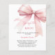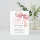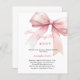 Een elegante witte achtergrond, versierd met een roze gekleurde boog. Personaliseer en voeg een naam en partijgegevens toe. Tekst: Ze knoopt de knoop door. 1 vel = 1 uitnodiging afgedrukt rand tot rand.