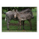 Een jonge zebra blijft bij zijn moeder.
