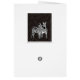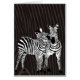 Een digitaal schilderij van twee Zebras op een speelse manier, met een bruine gestreepte achtergrond. Opmerking: Dit ontwerp past goed bij een verticale of horizontale kaart.