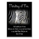 Een Zebra met een expressie, met een zwarte omlijsting, groeten. Kunst van Elenne Boothe