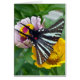 Un beau papillon zèbre à queue nue dans mon jardin fleuri en dégustant une zinnia le long d'un scarabée japonais.