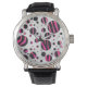 Zebra zwart en warm roze Piloka Dot Horloge