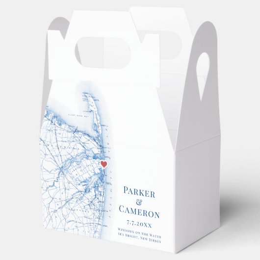 Snel en eenvoudig bestellen! Dit Zee Bright New Jersey Map huwelijksgunst box is ideaal voor uw bruiloft bij Windows on the Water of Edgewater Beach & Cabana Club. De marineblauwe North Jersey Shore kaart bevat Middletown, Shrewsbery, Eatontown, Long Branch, Monmouth Beach, Rumson, Fair Haven, Red Bank, Little Silver, Oceanport, Zee Bright, Highlands en Sandy Hook. Volledig Zee Bright, NJ bruiloft collectie beschikbaar. Kunstwerk door Coastal Map Design