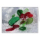 Rood en groen zee glas in de sneeuw maakt een mooie feestkaart.