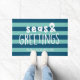 Zeeen en groeten deurmat in een lichte en donkere aqua streep.
