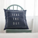Maak je strandhuis, kusthuis of -boot schoon met deze ongekende zeemiekkussens in de klassieke marine en wit. "Zeeen the Day" staat in een modern wit schrift op een blauw marineklein met een witte rand.