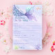 "A Sweet Little Mermaid is on the way", "Under the Zee" thema meisje baby shower party. Waterverf pastel paarse en blauwe tinten, met speelse zeemeerminstaart, clownvis en koralen.