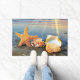 Zeeschelpen en zeesterkreeft op het strand deurmat