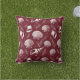 Kussen in een patroon van schelpen en delicate zeewierpatronen gerangschikt op een diepe kastanjebruine rode achtergrond, waardoor een opvallend contrast ontstaat. Het gedetailleerde lijnwerk voegt een ingewikkeld en naturalistisch gevoel toe aan de compositie.