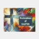 Zegeningen bij Pasen met een kruis en paaseieren en een kleurrijke achtergrond, deze deurmat maakt een mooi cadeau voor elke Christelijke.