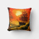 Dit kussen heeft een enorme zeilboot bij zonsondergang erop.