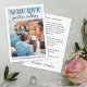 Laat je familie en vrienden weten dat je, door de huidige omstandigheden, je bruiloft terugdraait naar een kleinere en intieme ceremonie, met deze moderne en elegante fotokaart. Voeg een van je favoriete afbeeldingen toe aan de voorkant van de kaart, met de woorden "Zelfde liefde, kleinere bruiloft" en "We hebben onze bruiloft gereduceerd" in zwarte moderne lettertypen. Op de achterkant van de kaart kunt u uw bericht personaliseren met meer details en uw adres van de trouwwebsite voor verdere updates.