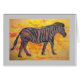 montre un mélange de peinture médiatique de zèbre violet avec des rayures bleues et le slogan "zen zèbre" !