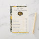 Stap in de betoverende wereld van een tuinfeest met ons heerlijke Vrijgezellenfeest Couple Quiz Game, versierd met een charmant citroenmotief. Wassen in delicate penseelstreken, dit ontwerp, waar heerlijke citroentakken en prachtige bloesems elk item sieren. Het houtskoolgrijs, citroengeel en crèmepalet straalt verfijning en warmte uit, waardoor een verfijnde en uitnodigende sfeer ontstaat. Perfect voor het testen van uw kennis van de dagelijkse gewoonten en eigenaardigheden van de bruid en bruidegom, dit aanpasbare spel voegt een vleugje natuurlijke charme toe aan elk vrijgezellenfeest, het vastleggen van de essentie van de lente met zijn fascinerende citroen en bloemenmotief.