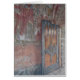 Kleurenpotloodtekening van frescoes en deur in de Zica-kerk in Servië. Tekening door Melissa Enderle