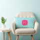 Zigzag Turquoise en roze aangepast monogram Kussen