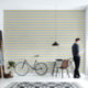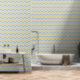 Gele, grijze, lichtblauw, witte zigzag strepen.