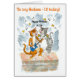Een leuke verjaardagskaart voor een 13-jarige Godson met twee coole katten, zingend 'Happy Birthday', vergezeld van gitaar en maracas; uit een handbeschilderde illustratie van Judy Adamson.