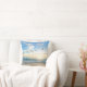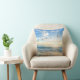 Deze kussen shows een prachtige strandscène, met zeemijlen die op het strand en de oceaan vliegen.