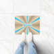 Als je houdt van de ontspanning die de zomer brengt, dan zal dit ontwerp, met tinten van een zanderige tan met een blauw accent dat is aangebracht om een lichte optische illusie te creëer, een geweldige manier zijn om je liefde te shows. Pas de begroeting aan om deze deurmat je eigen te maken of verwijder het en de semi-transparante onderlaag om het kunstwerk zonder enige tekst te hebben.