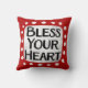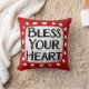 "Bless Your Heart" is een schattig tekstontwerp in rood met zwarte tekst, samen met een witte accentvorm en witte gestructureerde grillige stippen eromheen.