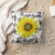 Kussen bedrukt met originele digitale waterverf zonnebloem en waterverf bladeren schilderen.