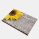 Heldergele zonnebloem op een , roestvrij houten tafel