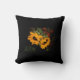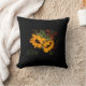 Zonnebloem Sierkussen op zwarte achtergrond. Aan de ene kant zijn gele zonnebloemen, aan de andere kant is het massieve zwarte kussen.
