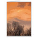 Deze mooie decoratieve hedendaagse briefkaart is een indrukwekkend abstract ontwerp van kale, zwarte, gesilhoueteerde bomen en een zonnehemel met wolken die in oranje, zalm, goud, bruin, bruin en bruin en paars worden gebaad.