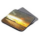 Een verbluffende foto van de zon op de Malediven, waardoor het er uitziet alsof de horizon in brand staat.