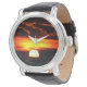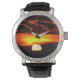Zonsopkomst of zonsondergang met diep oranje kleuren polshorloge
