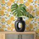 Verhelder uw ruimte met dit prachtige Peel & Stick behang met een levendig zonnebloempatroon. Het ontwerp toont grote, zonnig gele zonnebloemen met ingewikkelde, gedurfde oranje details, aangevuld met weelderige groene bladeren. De strakke witte achtergrond verbetert de levendigheid van het bloemenmotief, waardoor het een perfecte keuze is voor het toevoegen van een vleugje natuur en warmte aan elke kamer. Dit verwijderbare behang is niet alleen stijlvol maar ook praktisch, waardoor het gemakkelijk te installeren en te verwijderen is zonder uw muren te beschadigen. Ideaal voor een vrolijke keuken, een levendige woonkamer of een charmante kinderkamer.