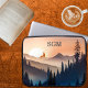 Deze laptophoes met rustiek berglandschap kan worden gepersonaliseerd met uw gewenste initialen of achternaam. Perfect voor elke outdoor liefhebber.
