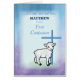 Het schaap staat voor een blauw kruis op deze katholieke felicitatiekaart terwijl je de Eerste Bekentenis van je zoon viert. Voeg zijn naam toe om een glimlach op deze kaart te brengen.