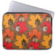 Het kleurpatroon van de herfst in browns en sinaasappels, paarse bladeren en eikels.